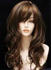 Real Human Hair New Fashion Long Natural Brown Wavy Women's Full Wigs 24 In