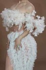 New Women Irregular Mesh Lace Flower Dress Singer Stage Wear Party Costume