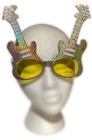 Glitzy Guitar Sunglasses Funny Music Rock & Roll Electric Glasses Yellow Gold