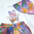 Psycho Bunny Boy Rainbow Bunny Skull Swim Trunks Bucket Hat Tee Set Size 4 & 5/6