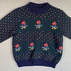 Vintage Susan Bristol Sweater Womens 34 Navy Floral Hand Embroidered Wool 80s