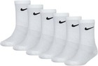 Authentic Nike Kid's Youth Everyday Crew Socks 6-pairs White Medium 5y-7y