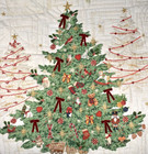 Pottery Barn Deck The Halls Christmas Tree Full Queen Quilt 2 Euro Shams New