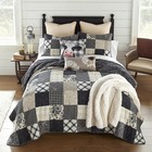Donna Sharp Augusta Patchwork Soft Black Ivory Cotton Country King 3pc Quilt Set