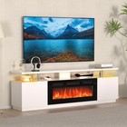 70 In 2 Tier Tv Console Stand Cabinet With 36 In Electric Fireplace Heater White