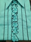 Vintage Aftersix Shirt Mens Blue Ruffle Tuxedo 70s Disco Big Collar Easy Care