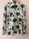 Black Point Hawaiian Shirt Large Silk Mix Green Floral Casual Biz Free Shipping