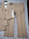 Men's Vtg 70s Brown 3 Pc Leisure Suit 1970s Disco Polyester Union Usa Made Read