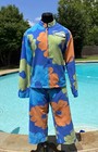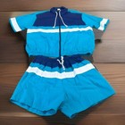 Vtg 80s Sea Island Swimmates Blue Zip Front Shirt And Swim Trunks Suit Men's M/l