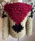 Clovis Ruffin Sweater Medium Knit Khaki Black Red Shaggy Fuzzy Pullover Vintage