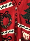 Vtg Knit Red Ugly Christmas Sweater Large/xl Bear Tree Bells Present Cardigan