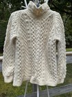 Vintage Hand Knit Wool Fisherman Sweater Cream Thick Irish Funnel Neck 20 By 25
