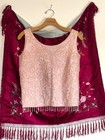 Vintage 60s Beaded Sequined Mod Pink Sweater Top Sleevless Fringe Cocktail