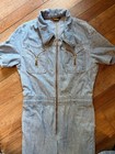 Vtg Women's 60s 70s Bell Bottom Denim Blue Jean Overalls Zipper Front Size Xxs??