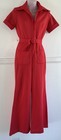 Vintage 1970s Poly Union Made S/s Red White Flared Wide Leg Jumpsuit Belt Sz 11