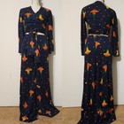 2pc Vest Pants Suit Set Womens S Brown Tapestry Bell Bottom 70s Floral Vtg Daisy