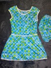 Vintage 1970s Union Made Swimsuit Sunsuit Dress Gabar Ny 2 Piece Green Blue