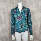 Vintage 80s Pamela Rayon Blouse Teal Purple Floral Button Up Long Sleeve Medium