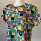 Vintage 80s 90s Fitting Image Rainbow Colorful Square Blocks Short Sleeve Blouse