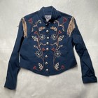 Vtg Red Lodge Western Button Up Shirt Jacket Shacket Fringe Embroidery Sz S
