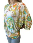Emilio Pucci Logo Poncho Top #38 Button Multicolor Rayon Short Sleeve Pullover