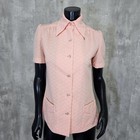 Chanel Vintage Po6048 Cc Logo Button Up Shirt Blouse Top #38 White Pink Cotton