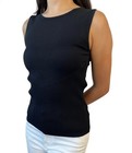 Chanel Vintage 05p Cc Logo Summer Knit Tank Top #38 Rib Round Neck Black Cotton