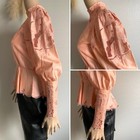 Vintage Pink Silk Ornately Embroidered Puff Mutton Sleeve Blouse