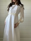 Vintage Union Made Lace Trim High Collar Empire Waist Pleated Wedding Dress 60’s