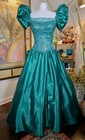 Vtg Eve Of Milady Dress Emerald Green Silver Lace Bodice Southern Belle