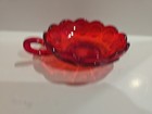 Fostoria Ruby Red Coin Pattern Glass Scalloped Handle Serving Nappy Dish Frees&h