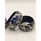 Hand Painted Blue Floral Wooden Napkin Rings Gzhel Style Set Of 4