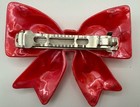 Vintage Large Celluloid Plastic Bow Barrette Polka Dot Dark Pink Pearlescent