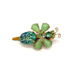Antique Art Deco Celluloid Hair Comb W/ Green Rhinestone’s