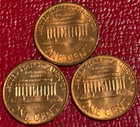Lot F 3 Unc 1961 P,1962 D,1964 D Lincoln Memorial Cents-jun101