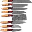 8pcs Pro Best Damascus Steel Chef/kitchen Knife Set With Leather Roll Case Bag