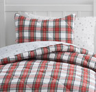 Pottery Barn Kids Holiday Morgan Plaid Organic Flannel Standard Sham, Red Multi