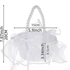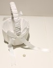 White Satin Flower Girl Basket Faux Pearl Handle Bowknot 8" X 5" X 5" Wedding