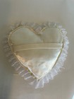 🌸vintage 80s Lace Heart Shape Ring Bearer Pillow Wedding White Cream Satin