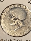 Hobo Nickel Style Kennedy Half Dollar Art Skull Coin, Dated 1974