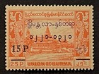 1954 Error Overprint Burma 25p Stamp With Myaungmya Son Cancel