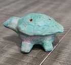 Folk Art Clay Turtle Turquoise Whistle Flute Handcrafted Figurine (3 1/2")