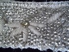 Vintage Embroidery Bead Floral Sequin Belt White And Silver Sash Ribbon Tie