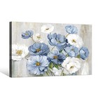 Blue Flower Wall Art Light Blue And White Floral Canvas 40"l X 20"w Blue,white