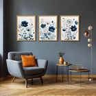 Lleempi Navy Blue Floral Wall Art Set Of 3, Modern 16"l X 12"w Navyblue(wood)