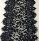 3 Yards Black Floral Embroidered Eyelash French Mesh Lace Trim/13 Inches Wide