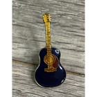 Vintage Acoustic Guitar Lapel Pin Navy Blue Enamel Gold Tone Musician Gift 1.25"