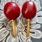 Hand Etched Pair Of Trinidad Tobago Wooden Maracas Red & Black Africa