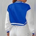Shein Long Sleeve Crop Jacket Sz L Blue White Bomber Coat Varsity Baseball