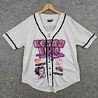 Betty Boop Print Baseball Jersey White Black Trim Button Up Women's Size L Spot